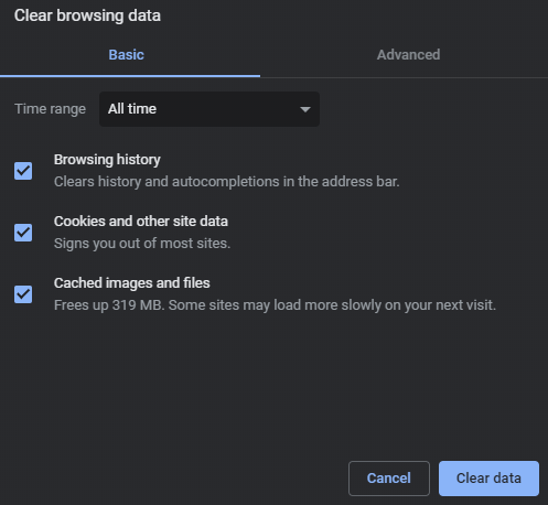 Clear Internet History / Cache in Google Chrome