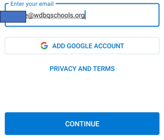 Enter in your school username@wdbqschools.org and click continue