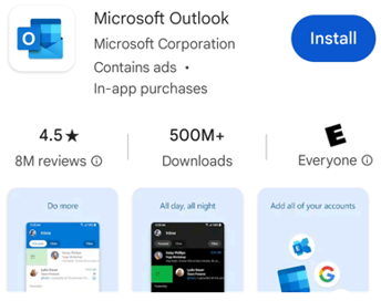 Download and install the Outlook app on your device through your app store