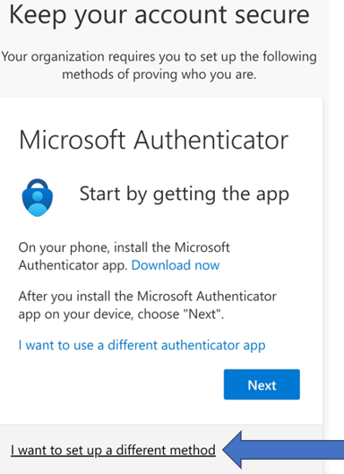 Click on I want to set up a different method