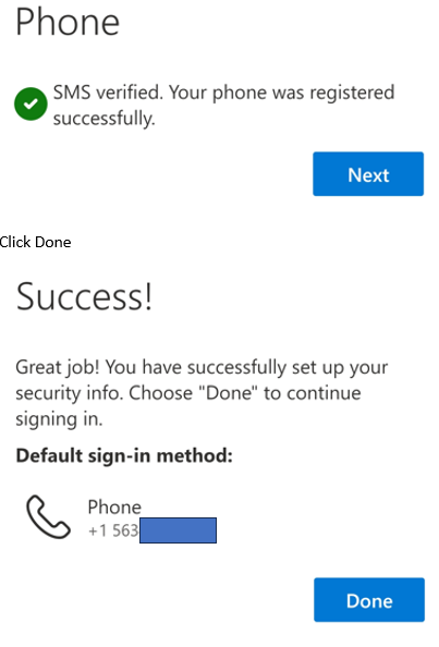 Click Next when you see the SMS verified successfully screen