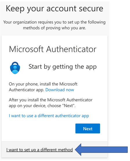Click on I want to set up a different method